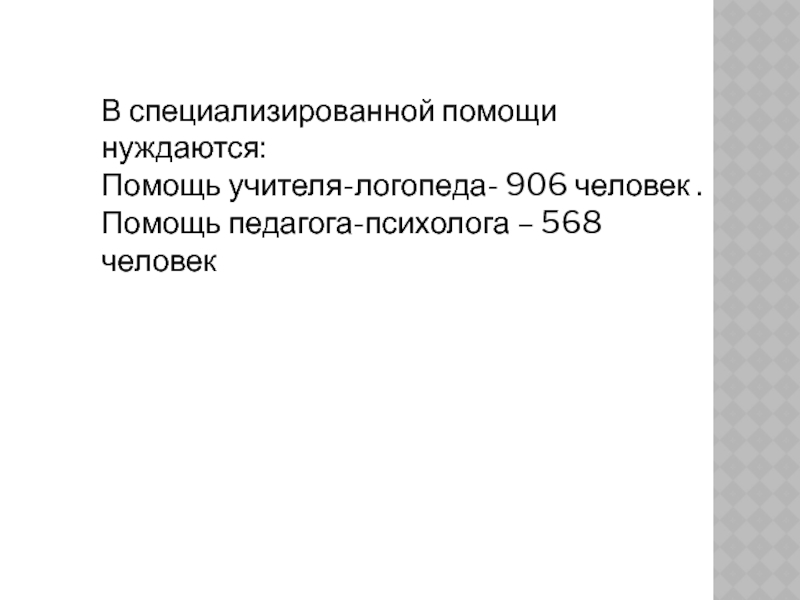Слайд 8В специализированной помощи нуждаются: