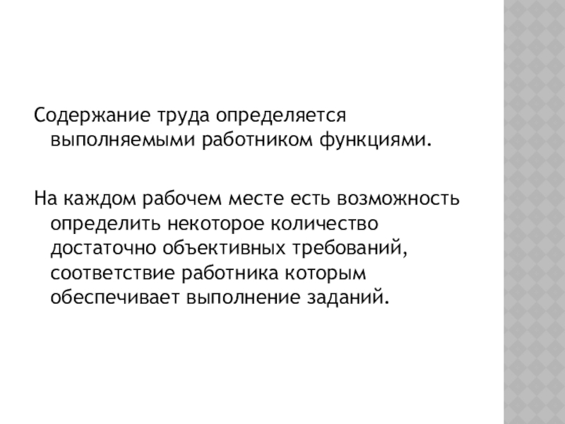 Слайд 3Содержание труда определяется выполняемыми работником функциями.