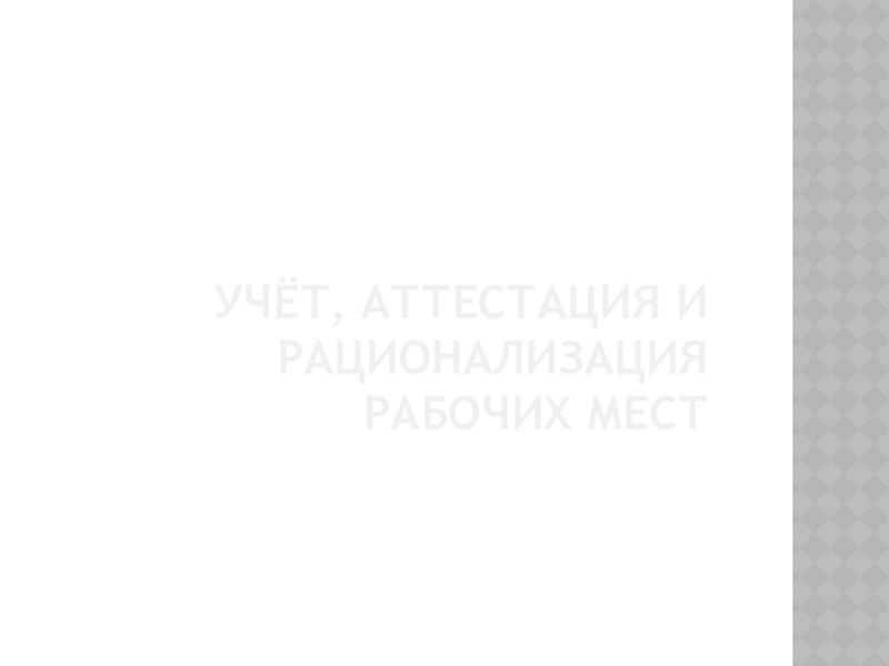 Слайд 10Учёт, аттестация и рационализация рабочих мест