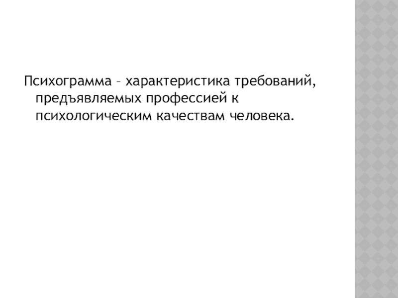 Слайд 9Психограмма – характеристика требований, предъявляемых профессией к психологическим качествам человека.