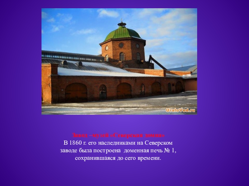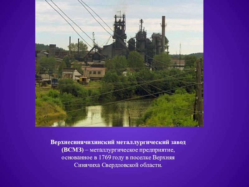 Слайд 24Верхнесинячихинский металлургический завод (ВСМЗ) – металлургическое предприятие, основанное в 1769 году в