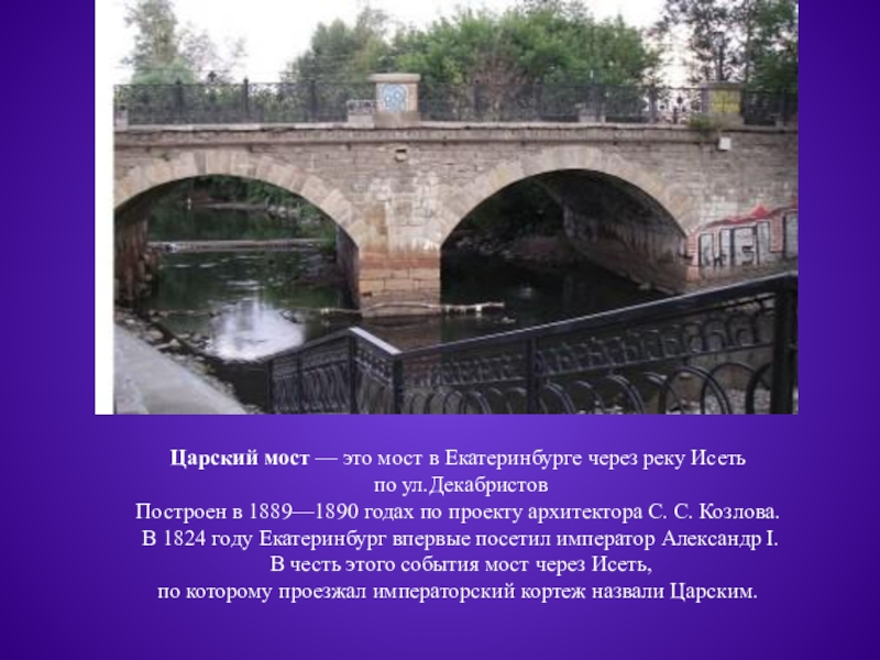 Слайд 18Царский мост — это мост в Екатеринбурге через реку Исеть