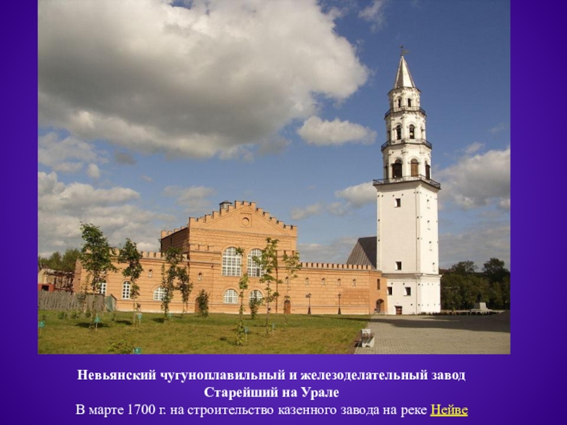 Слайд 26Невьянский чугуноплавильный и железоделательный завод