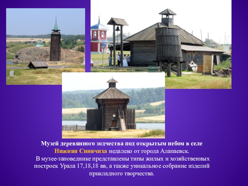 Слайд 23Музей деревянного зодчества под открытым небом в селе Нижняя Синячиха недалеко