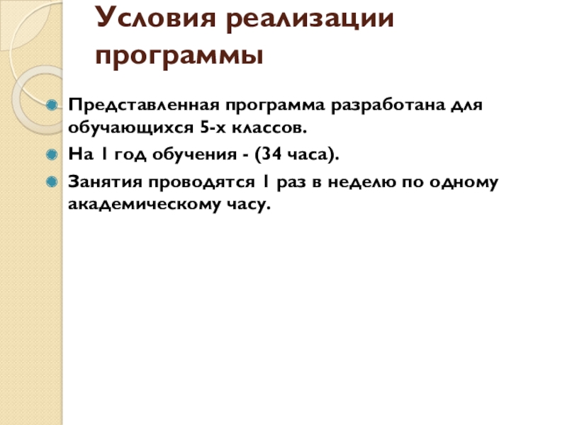 Занятия проводятся 1 раз в неделю по одному академическому часу.