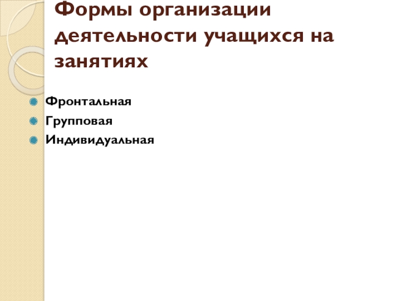 Слайд 12Формы организации деятельности учащихся на занятиях