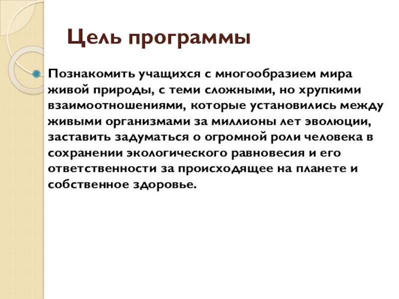 Познакомить учащихся с многообразием мира живой природы, с теми сложными,