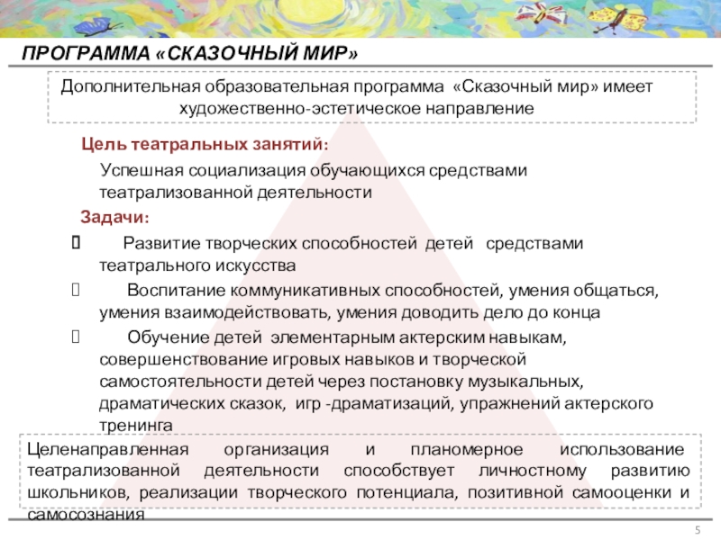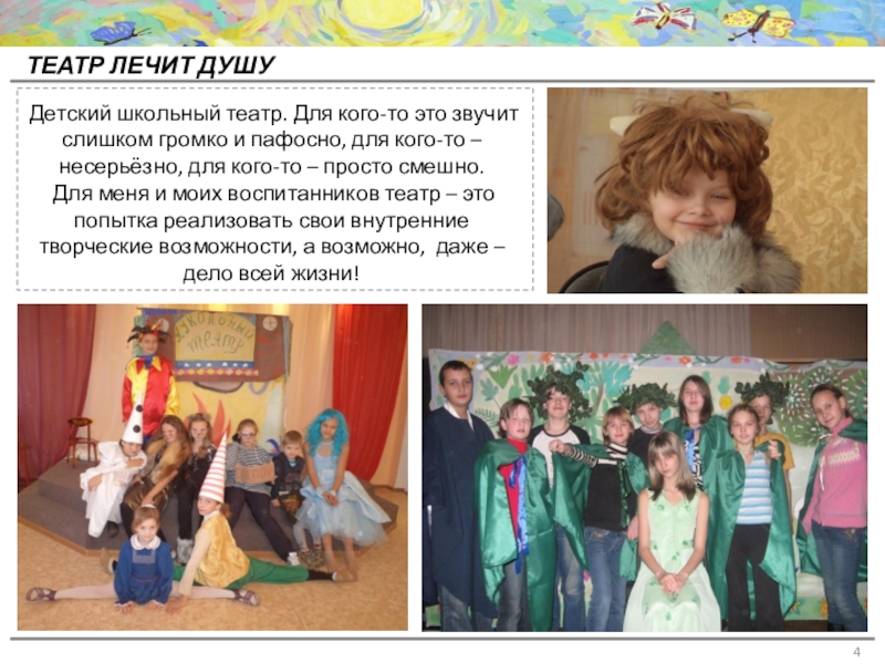 Целенаправленная организация и планомерное использование театрализованной деятельности способствует личностному развитию школьников, реализации творческого потенциала, позитивной самооценки и самосознания