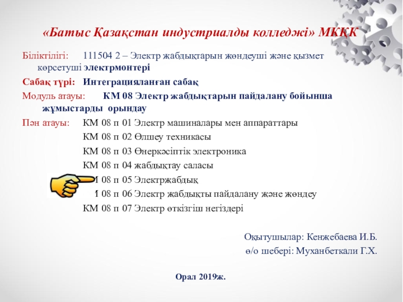 Модуль атауы: КМ 08 Электр жабдықтарын пайдалану бойынша жұмыстарды орындау