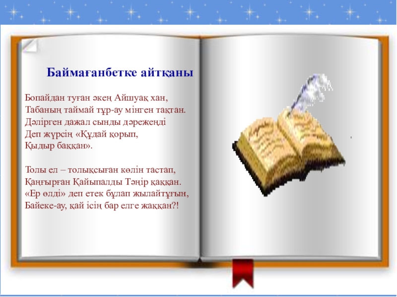 Өмірінің соңғы кезінде Баймағамбет, Қайыпалды сұлтандармен кездесіп, бетпе-бет айтқан батыл сөздеріне қарағанда, ол шындықты айтудан тайынбаған, хан алдында қасқайып тұрып, оның мінін көрсетуге батылы жеткен ақын.