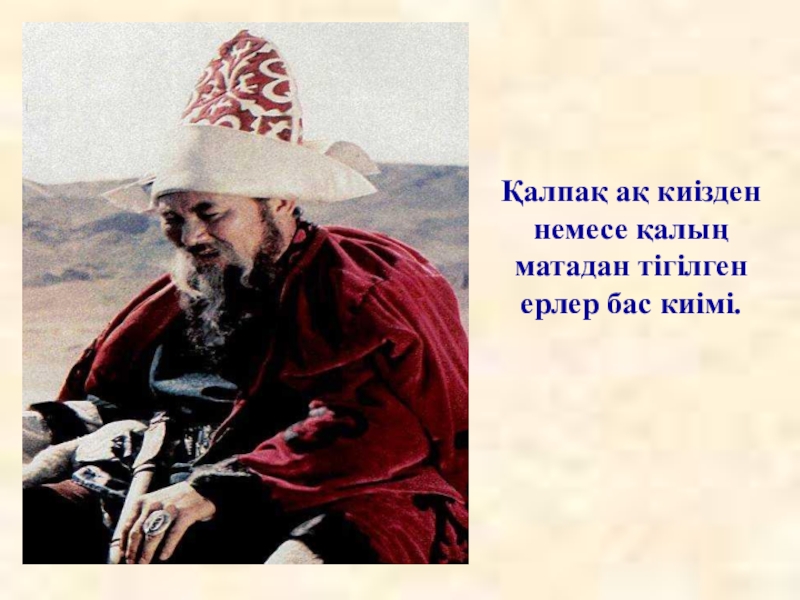 Слайд 5Қалпақ ақ киізден немесе қалың матадан тігілген ерлер бас киімі.