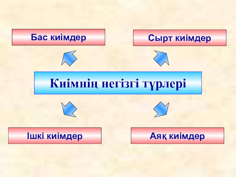 Киімнің негізгі түрлеріБас киімдерСырт киімдерІшкі киімдерАяқ киімдер