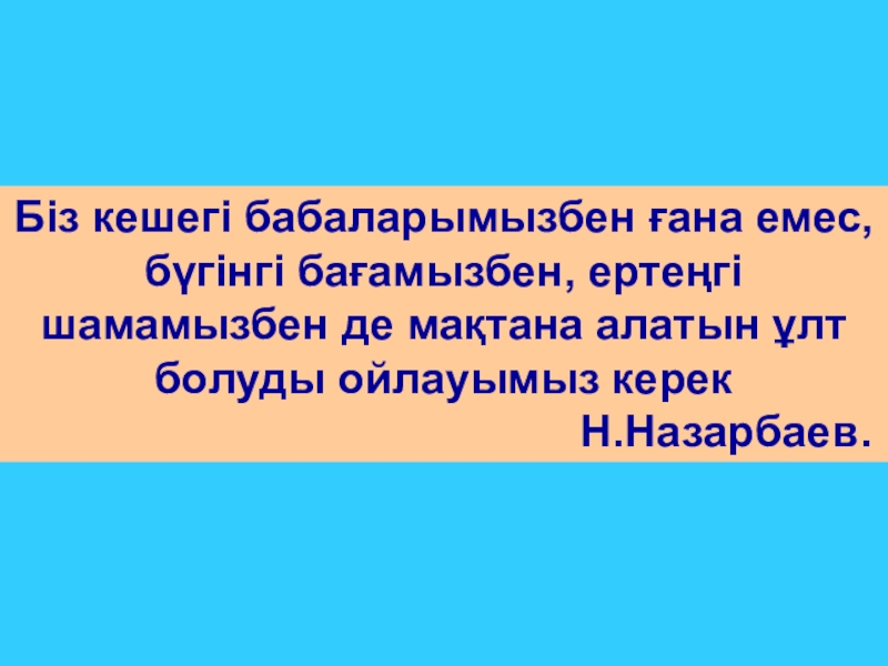 Слайд 21Біз кешегі бабаларымызбен ғана емес,