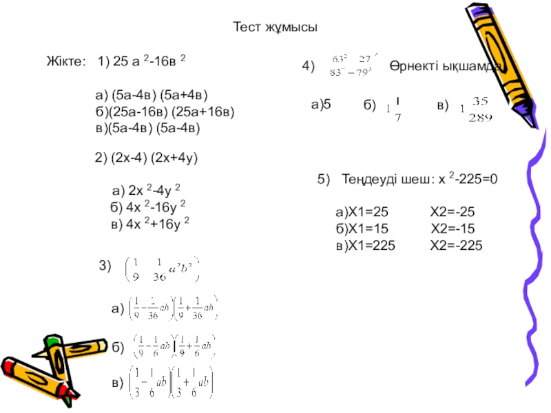 5) Теңдеуді шеш: х 2-225=0