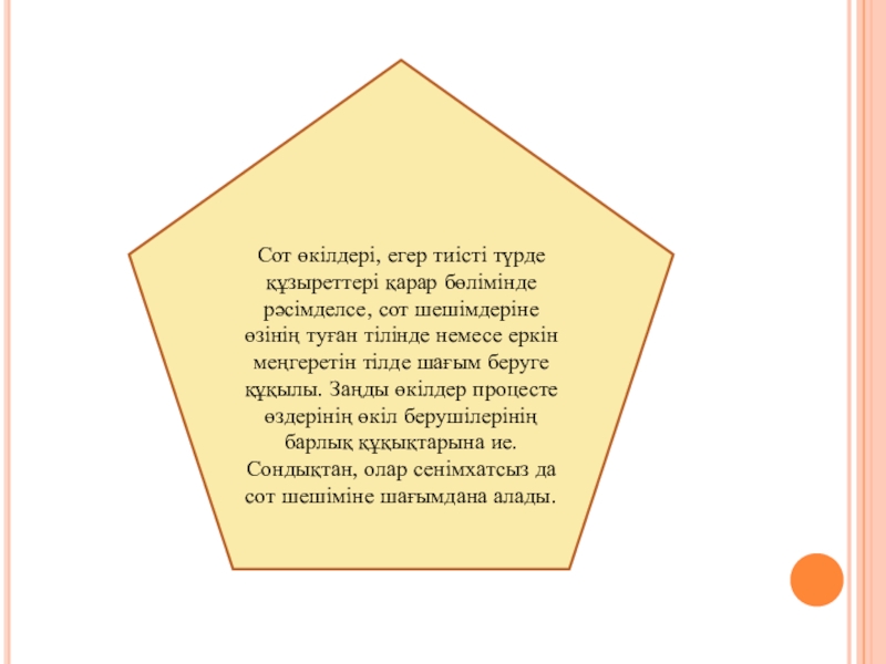 Слайд 8Сот өкілдері, егер тиісті түрде құзыреттері қарар бөлімінде рәсімделсе, сот шешімдеріне