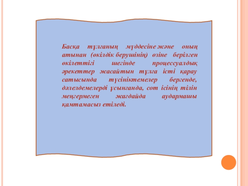Басқа тұлғаның мүддесіне және оның атынан (өкілдік берушінің) өзіне берілген өкілеттігі шегінде процессуалдық