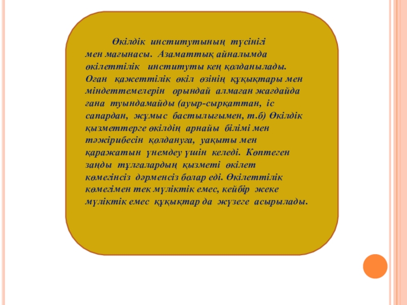 Өкілдік институтының түсінігі мен мағынасы. Азаматтық