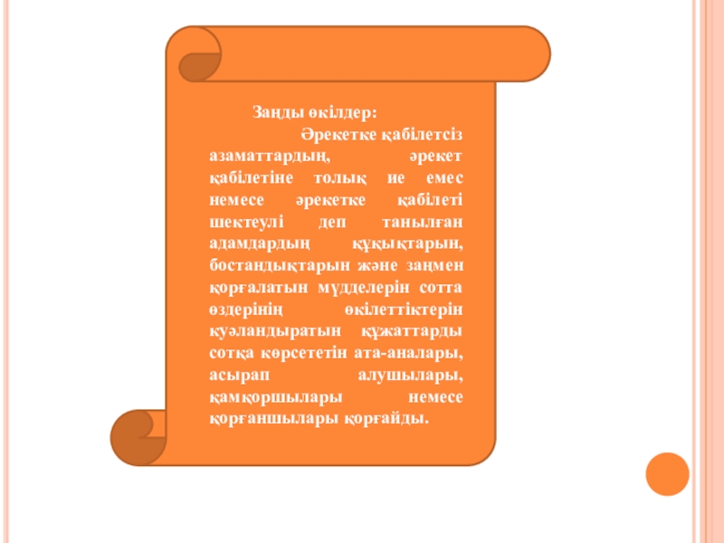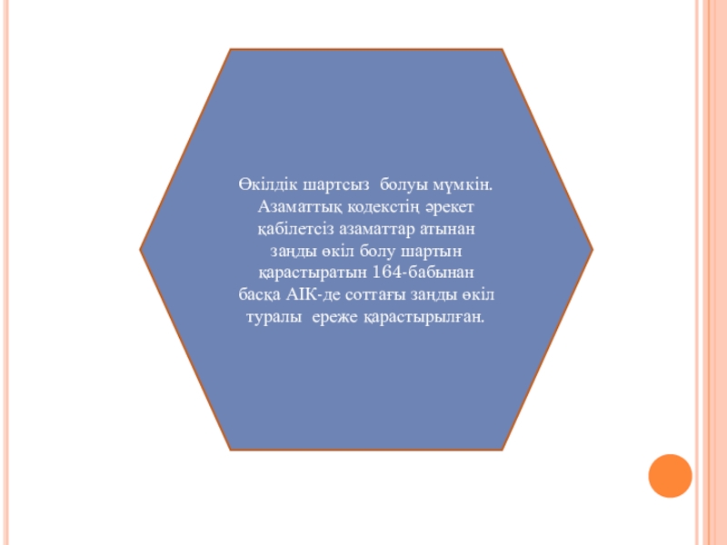 Слайд 12Өкілдік шартсыз болуы мүмкін. Азаматтық кодекстің әрекет қабілетсіз азаматтар атынан заңды