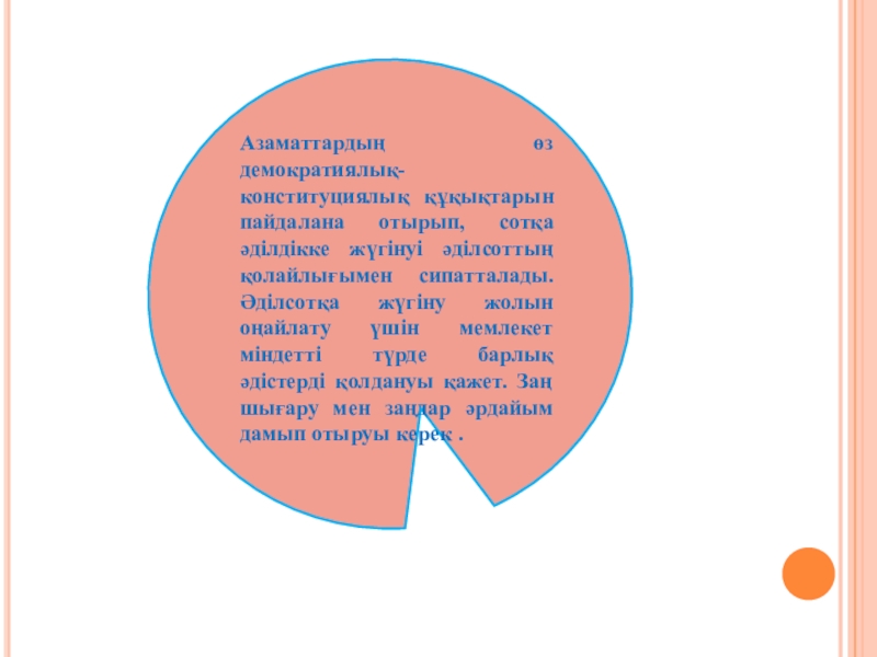 сипатталады. Әділсотқа жүгіну жолын оңайлату үшін мемлекет міндетті түрде барлық әдістерді қолдануы қажет. Заң шығару мен заңдар әрдайым дамып отыруы керек .