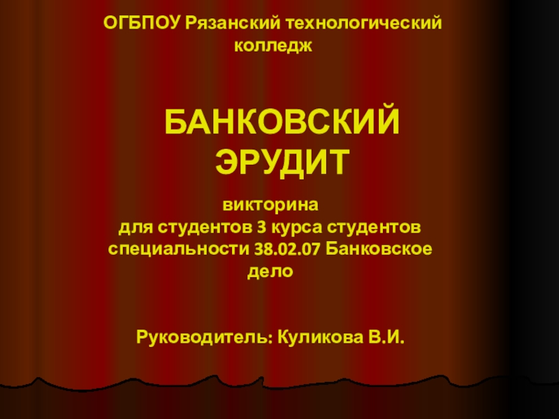 Руководитель: Куликова В.И.