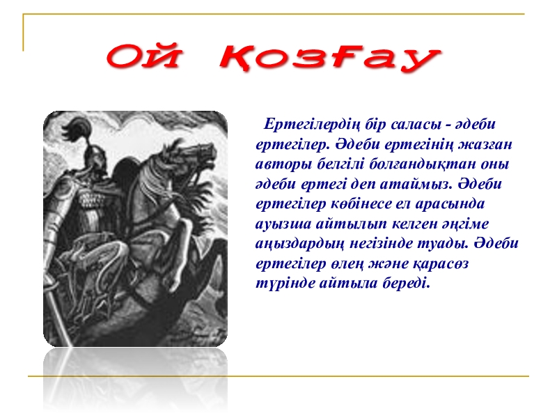 Ой қозғау  Ертегілердің бір саласы - әдеби ертегілер. Әдеби ертегінің жазған авторы белгілі болғандықтан оны