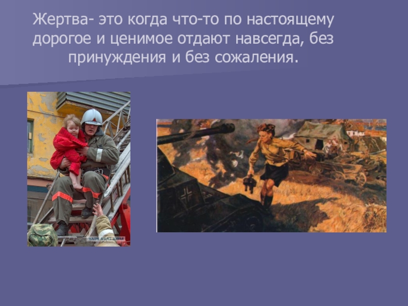 Слайд 3Жертва- это когда что-то по настоящему дорогое и ценимое отдают навсегда,