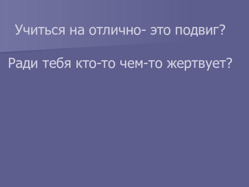Слайд 8Учиться на отлично- это подвиг? Ради тебя кто-то чем-то жертвует?