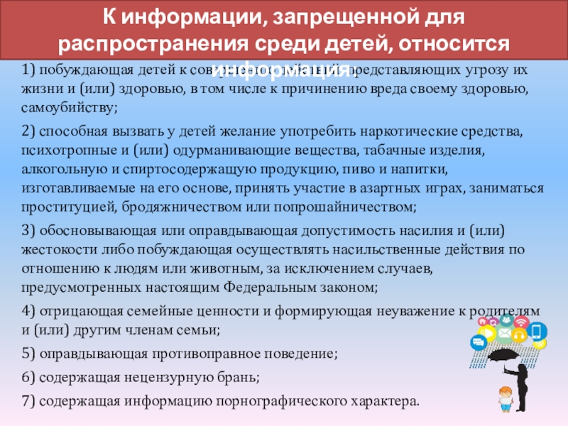 6. Пропаганда наркотиков, насилия и жестокости, суицидального поведения, абортов, самоповреждений может быть весьма опасной для неокрепшей детской психики.