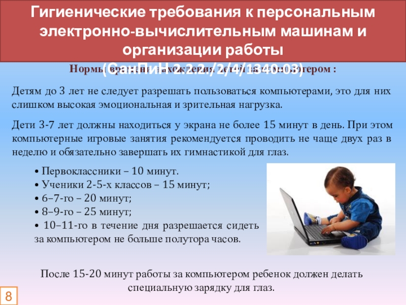 Нормы времени нахождения детей за компьютером :