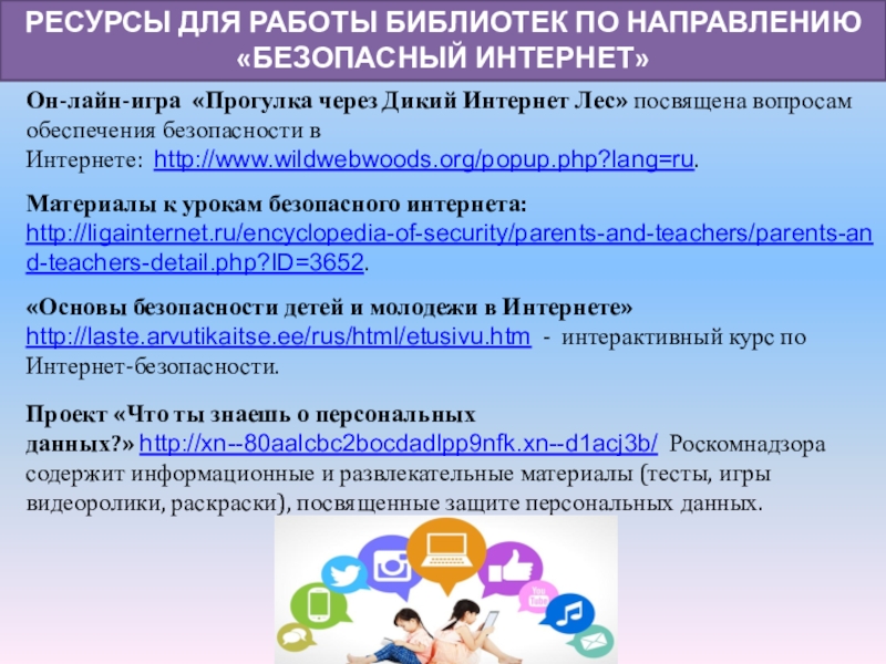 Проект «Что ты знаешь о персональных данных?» http://xn--80aalcbc2bocdadlpp9nfk.xn--d1acj3b/ Роскомнадзора содержит информационные и развлекательные материалы (тесты, игры видеоролики, раскраски), посвященные защите персональных данных.