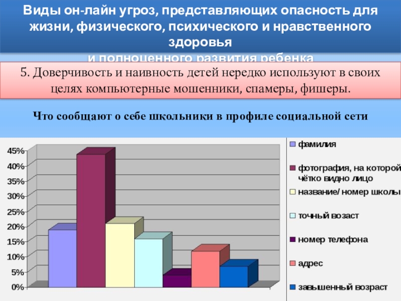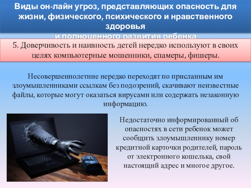 5. Доверчивость и наивность детей нередко используют в своих целях компьютерные мошенники, спамеры, фишеры.
