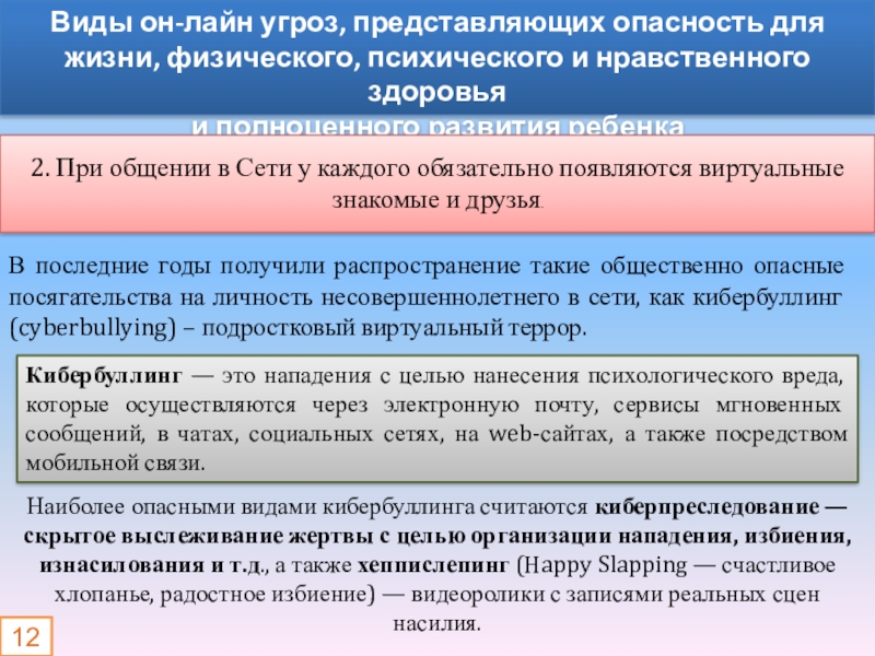 В последние годы получили распространение такие общественно опасные посягательства на личность несовершеннолетнего в сети, как кибербуллинг (cyberbullying) – подростковый виртуальный террор.