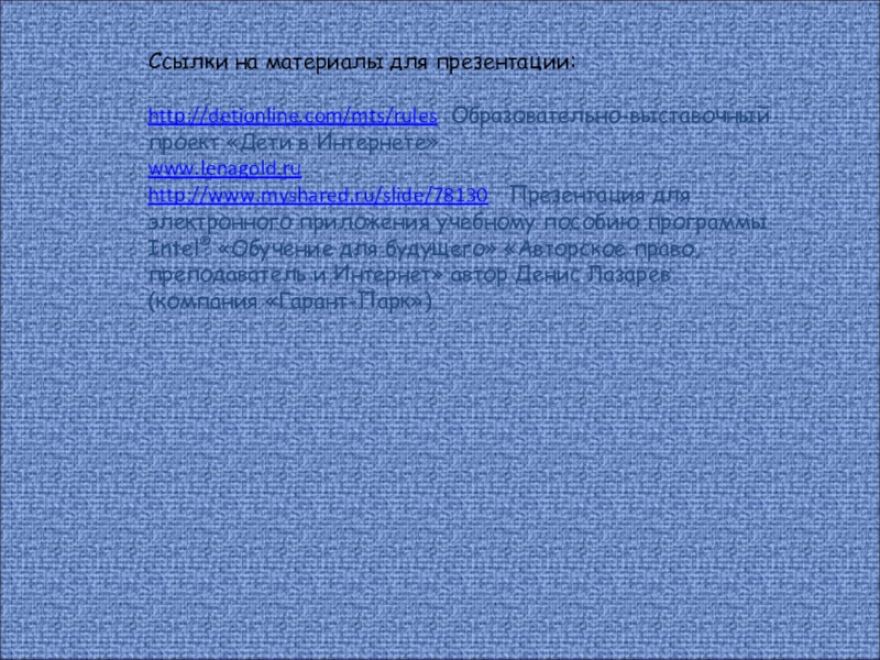 Это сайт презентаций, где можно хранить и обмениваться своими презентациями, докладами, проектами, шаблонами в формате PowerPoint с другими пользователями. Мы помогаем школьникам, студентам, учителям, преподавателям хранить и обмениваться учебными материалами.
