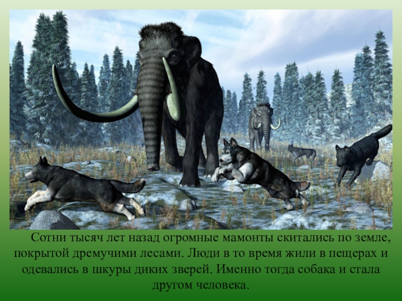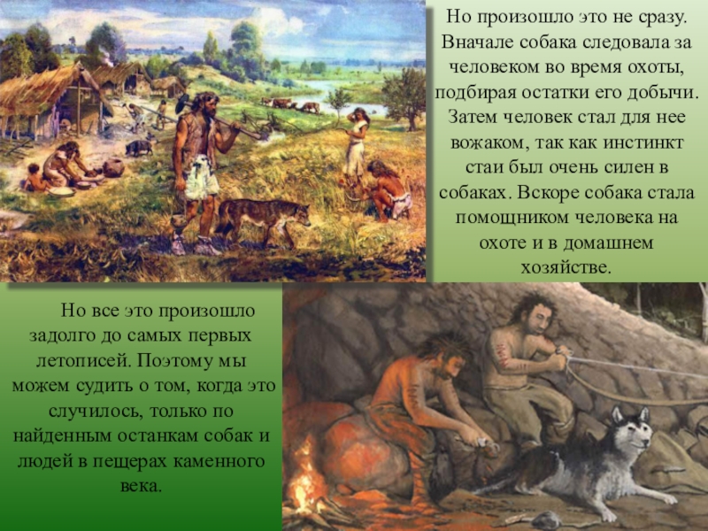 Собаки помогали человеку находить и загонять зверей в глубокие ямы, а человек делился с ними частью добычи.