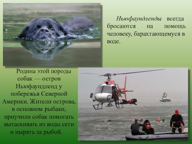 Ньюфаундленды всегда бросаются на помощь человеку, барахтающемуся в воде.