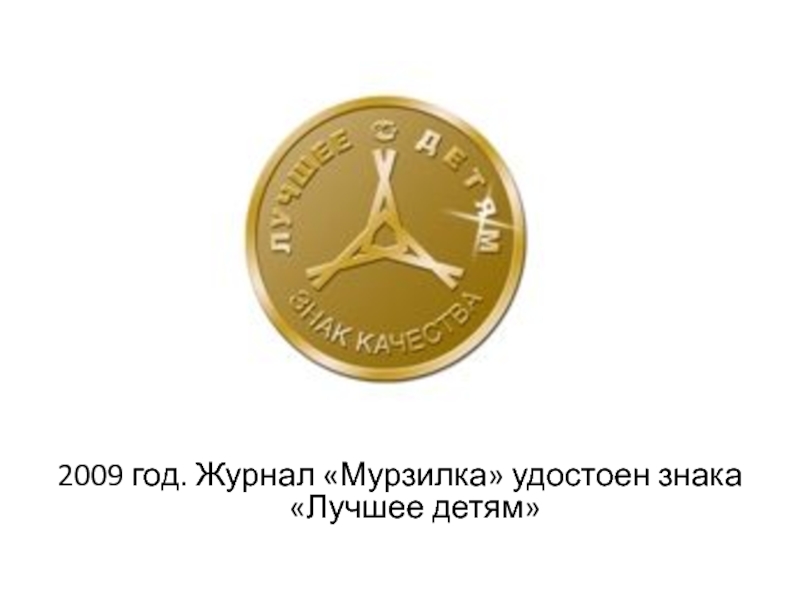 Слайд 102009 год. Журнал «Мурзилка» удостоен знака «Лучшее детям»