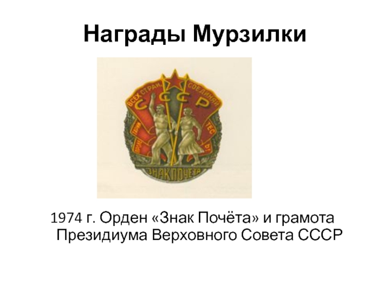 Награды Мурзилки1974 г. Орден «Знак Почёта» и грамота Президиума Верховного Совета СССР