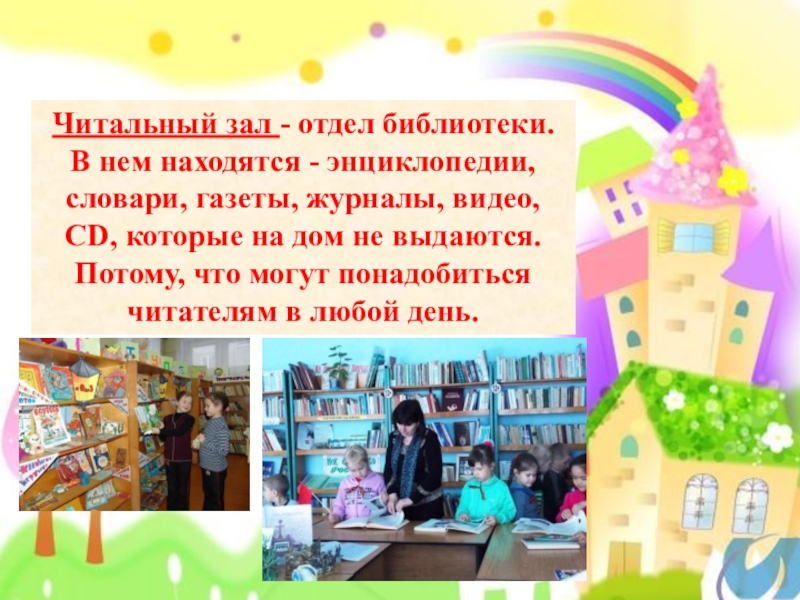 журналы, видео, CD, которые на дом не выдаются. Потому, что могут понадобиться читателям в любой день.