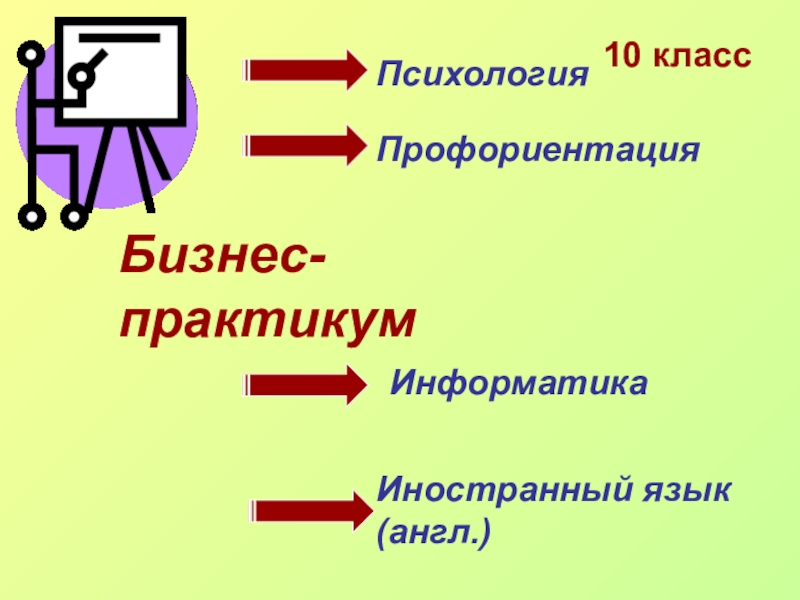 Бизнес-практикумПсихологияПрофориентацияИнформатикаИностранный язык (англ.)10 класс
