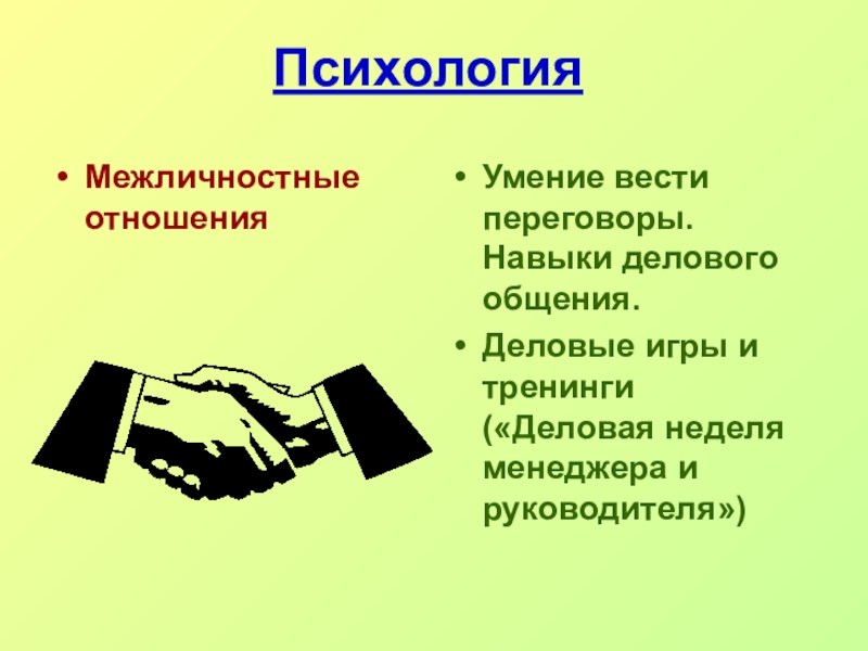 Психология Межличностные отношенияУмение вести переговоры. Навыки делового общения.Деловые игры и тренинги («Деловая неделя менеджера и руководителя»)