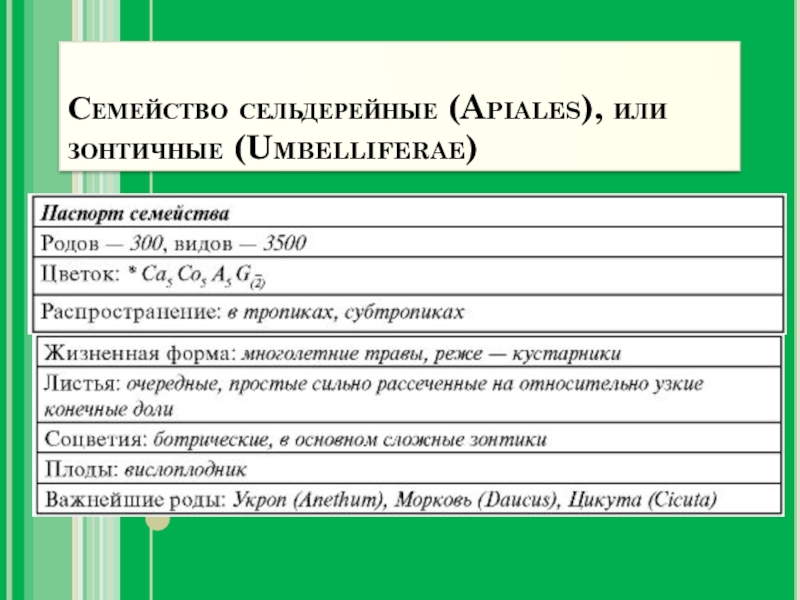 Слайд 9Семейство сельдерейные (Apiales), или зонтичные (Umbelliferae)