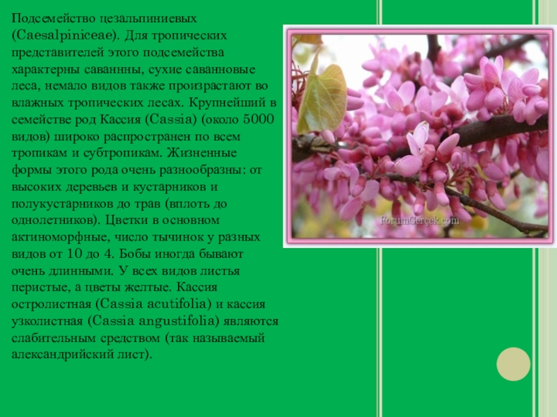Слайд 8Подсемейство цезальпиниевых (Caesalpiniceae). Для тропических представителей этого подсемейства характерны саваннны, сухие