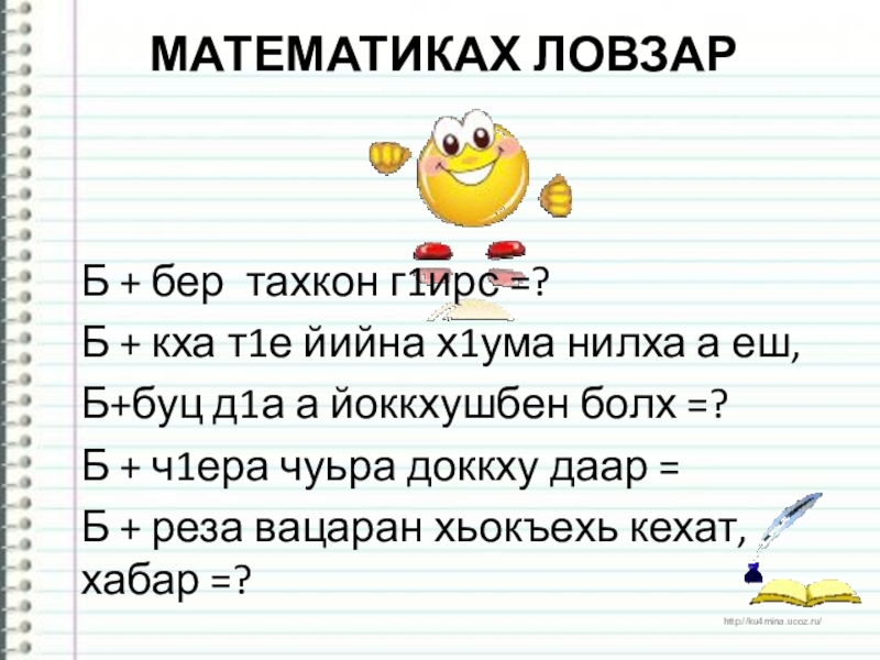 Математиках ловзарБ + бер тахкон г1ирс =? Б + кха т1е йийна х1ума нилха а еш,Б+буц д1а