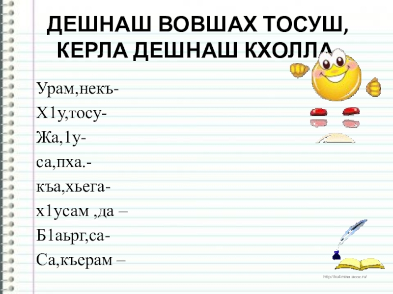 Слайд 15Дешнаш вовшах тосуш,керла дешнаш кхолла.