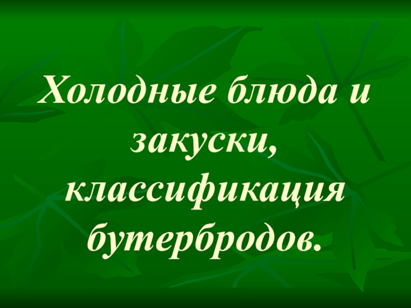 Слайд 1Холодные блюда и закуски, классификация бутербродов.