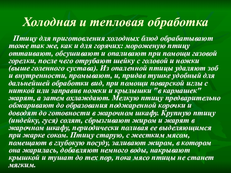 Птицу для приготовления холодных блюд обрабатывают тоже