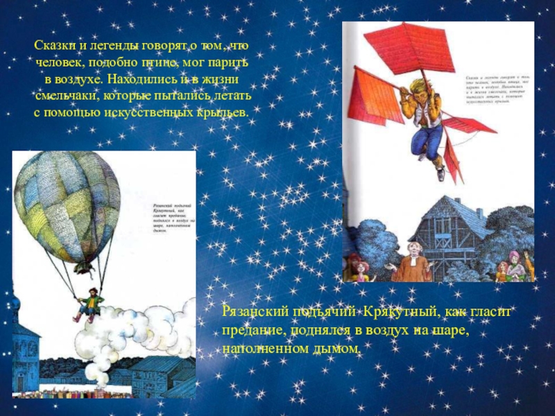 Слайд 3Сказки и легенды говорят о том, что человек, подобно птице, мог