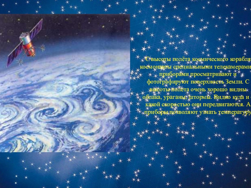 Слайд 24С высоты полёта космического корабля космонавты специальными телекамерами и приборами просматривают