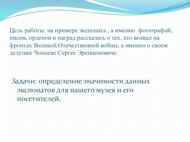 Задачи: определение значимости данных экспонатов для нашего музея и его посетителей.
