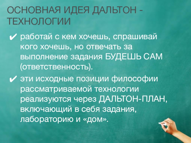 Слайд 8ОСНОВНАЯ ИДЕЯ ДАЛЬТОН -ТЕХНОЛОГИИ